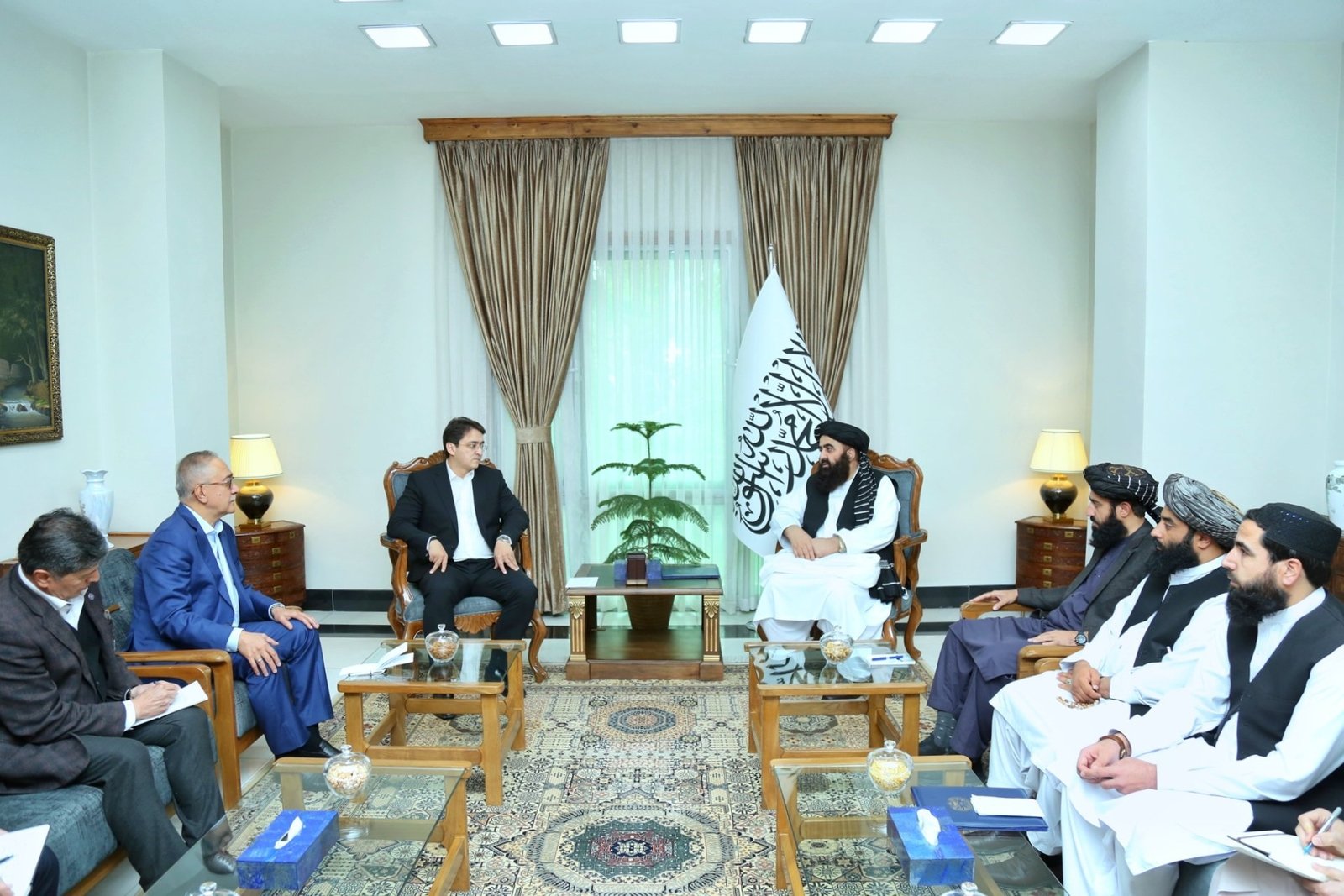 طالبان تشقی ایشلر وزیرلیگینینگ اعلام قیلیشیچه بو گروهنینگ تشقی ایشلر وزیری امیرخان متقی، اۉزبېکستان تشقی ایشلر وزیرلیگینینگ اۉرین باسری بابر عثمانوف و قیرغیزستان تشقی ایشلر وزیرلیگینینگ اۉرین باسری غیرت تورسینقلاف بیلن علیحده اوچرهشوولر اۉتکزگن.
