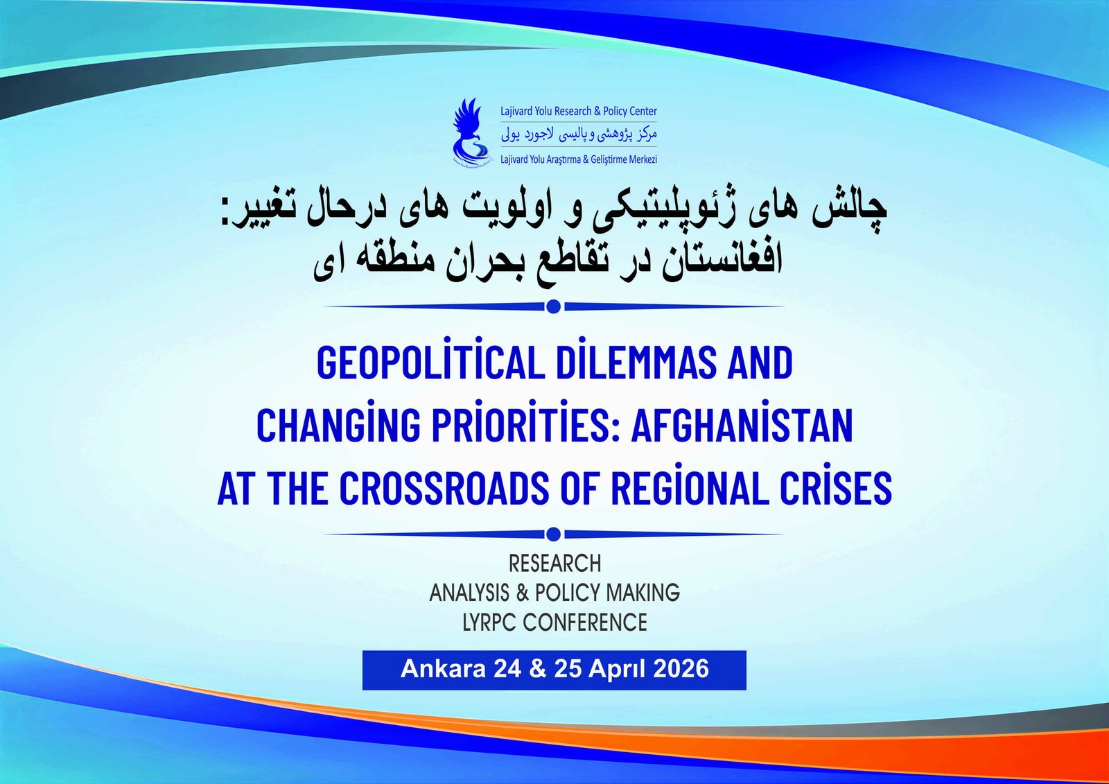 دېمک «سیاسی اۉزگریش و منطقوی ترتیب؛ افغانستان اۉزگریب بارهیاتگن ژئوپلیتیک قرهشیده» عنوانلی اوشبو ییغین، اپریل آیینینگ ۲۴ – و ۲۵- کونلری اۉتکزیلیشی قرار قیلینگن.